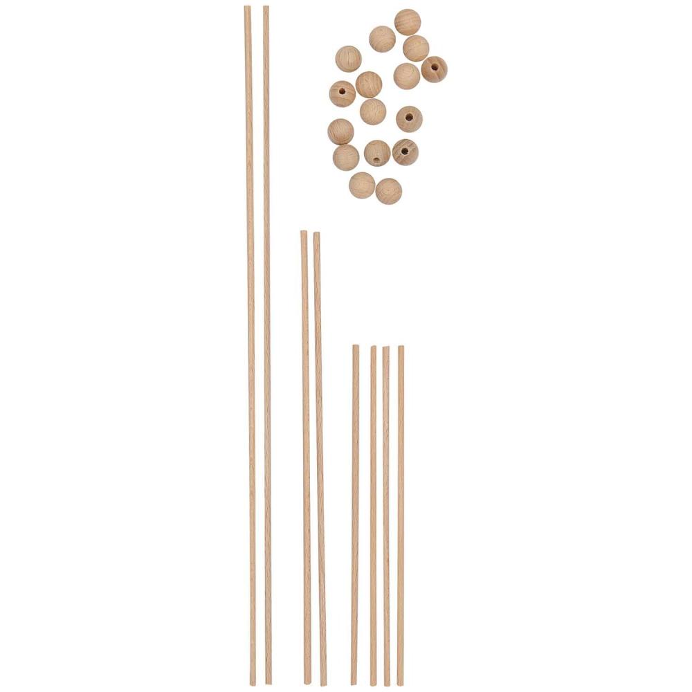 Créez un mobile très spécial et individuel pour votre enfant. Vous trouverez ici la base avec des tiges en bois de différentes longueurs