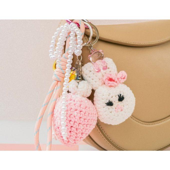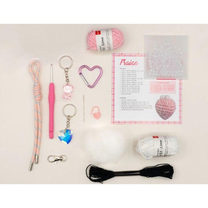 Avec ce kit, vous apprendrez à crocheter une maxi-fraise ultra gourmande et un lapin kawaii, parfaits pour personnaliser vos accessoires. Ces petits grigris deviennent ainsi de véritables porte-bonheur colorés, faits main et uniques.